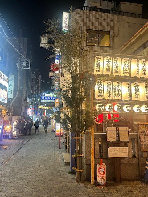 2025年12月より2026年2月14日まで神田駅西口商店街では、恒例の提灯イルミネーションを